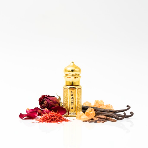 A radiant blend of citrus freshness and sweet florals layered over warm oud and amber. Bright yet sensual, Jameela balances freshness with depth for effortless everyday elegance.