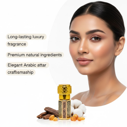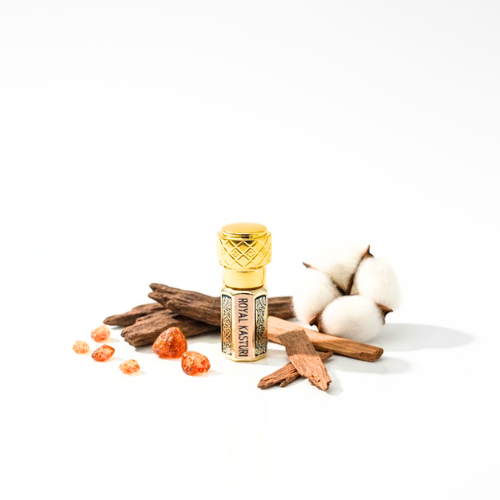 Royal Kasturi is a rich and captivating fragrance inspired by the depth and warmth of classic musk traditions. Bold yet refined, this scent opens with subtle spicy freshness before unfolding into a heart of smooth woods and soft florals. The base reveals an intense blend of kasturi (musk), amber, and warm earthy accords—creating a powerful and unforgettable trail.